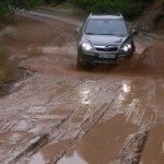 L’Antara segue con autorevolezza la conformazione del fondo ma non si infossa facilmente negli avvallamenti e soprattutto non rimbalza nelle buche. Sulla scarsa aderenza della terra, scivola nelle curve mantenendo buona trazione. Un comportamento che afferma il piglio fuoristradistico dello spirito Antara. L’altezza da terra non mette patemi e la motricità prontamente ripartita permette di manovrare l’Antara sullo sconnesso in modo spigliato, situazione in cui il controllo trazione TCS offre il miglior contributo al sistema 4wd.