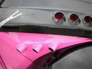 Il timbro della personalizzazione presenta un’estetica da allucinazione notturna, frutto di una mente in cerca di estrosità. Quella che può avere per esempio un baldo carrozziere che non ha dimenticato il piglio della creatività artigiana. Giocando con tinte nero e fucsia, cosparge il tutto con un luccicante “effetto brillantina”, che ovviamente si esalta tantopiù nelle luci notturne.