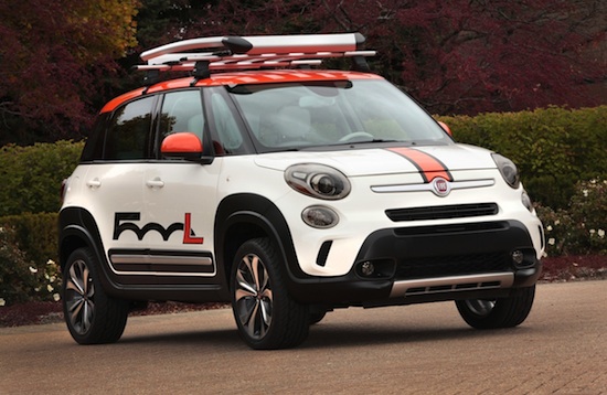 Fiat 500L Thalassa – Spirito avventuriero per questa “mega 500” by Mopar, che esibisce ruote 18” x 8 Beach Cruiser, paraurti e parafanghi non verniciati, sticker e carrozzeria nella bi colorazione bianco e arancio. Inoltre, compare il porta surf sul tetto, perfettamente studiato tenendo conto delle caratteristiche aerodinamiche della vettura. Perché i tecnici Mopar, è doveroso sottolineare, lavorano a stretto contatto con gli ingegneri e gli stilisti dei vari brand appartenenti a Fiat- Chrysler. Infine, l’abitacolo della Fiat 500L Thalassa sfoggia sedili rivestiti in misto pelle e velluto, mentre a livello di colori viene ripreso l’abbinamento bianco-arancio degli esterni.
