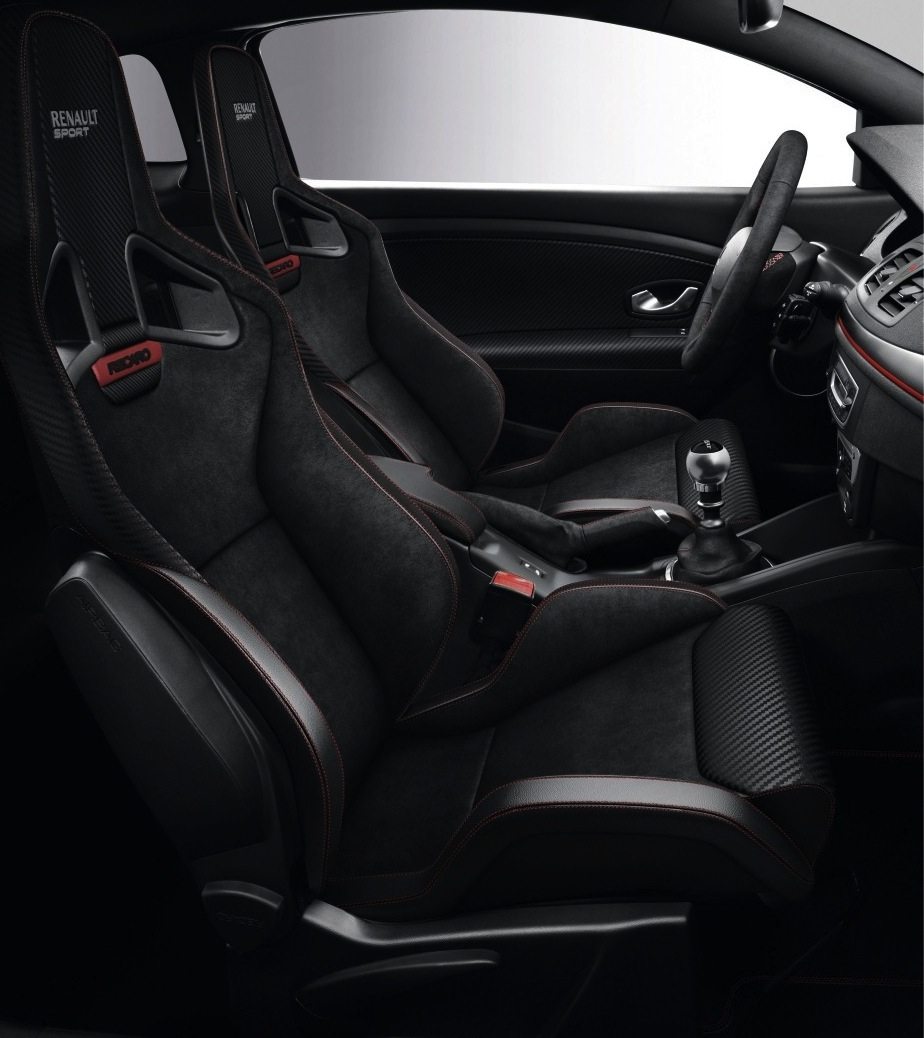 Mégane R.S. 275 Trophy propone sedili avvolgenti Recaro in pelle e alcantara, impreziositi da impunture rosse, riprese anche sul sedile posteriore. I poggiatesta sono siglati Renault Sport. Numerosi i dettagli che distinguono gli interni: volante e soffietto del freno a mano in alcantara con impunture rosse, pomello della leva del cambio Zamac.