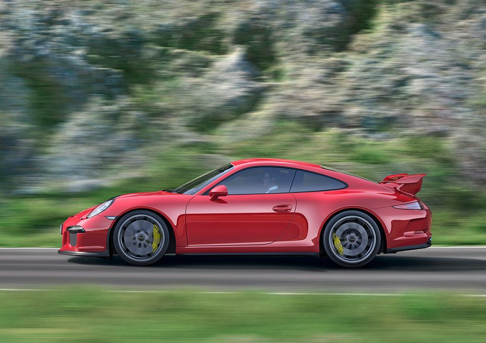 Riguardo il motore, come accennato in apertura la 911 GT3 ha un inedito 6 cilindri boxer di 3.800 cc, derivato da quello della Carrera S, erogante 475 CV a 8.250 giri/min e la possibilità di allungare fino a 9.000 giri/min.. Più specificamente le testate risultano interamente nuove, gli alberi a camme hanno profili assai spinti e tanto le bielle quanto i pistoni sono dimensionati per l’utilizzo continuativo al limite in pista. A quest’ultimo riguardo, la lubrificazione a carter secco permette il costante fabbisogno d’olio al propulsore anche durante le massime accelerazioni e decelerazioni. Come se non bastasse, vi è una piastra di separazione collocata tra basamento e coppa olio. Tale sistema ha 18 frangiflutti destinati a ridurre l’iniezione di lubrificante nel basamento e le perdite per sbattimento, che concretamente significa inviare al motore la giusta quantità d’olio in ogni condizione d’esercizio.