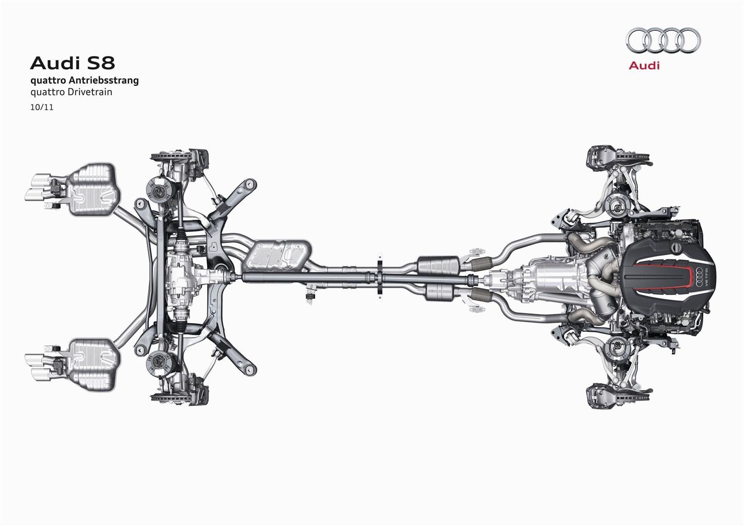 Al volante della Audi S8 il guidatore sportivo può togliersi parecchie soddisfazioni, apprezzando la progressione vigorosa e costante del motore, le veloci cambiate dell’automatico Tiptronic a 8 rapporti e l’assetto tendenzialmente neutro. Assetto avvantaggiato sia dal raffinato layout sospensivo a quadrilateri deformabili anteriormente e multilink a quattro leve posteriormente, sia dalle sospensioni pneumatiche di serie. Senza dimenticare, inoltre, la proverbiale trazione integrale quattro che assicura massima aderenza ma, nonostante la preponderanza di coppia al retrotreno, lascia spazio a un po’ di sottosterzo nella guida al limite. Quanto allo sterzo, il comando è preciso e abbastanza diretto ma la servoassistenza elettromeccanica non assicura il massimo feedback.