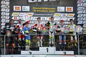 Nella Supersport alla fine l’ha spuntata il più giovane. L’appena diciottenne Federico Cariasulo ha tagliato il traguardo in terza posizione, dietro a Roccoli e Cruciani, conquistando il titolo di Campione Italiano SS 2014.