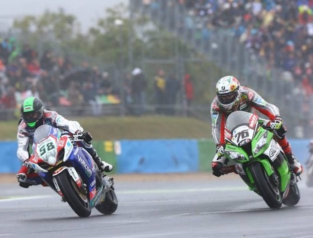 Colpi di scena e cadute sotto la pioggia battente, con un finale che farà discutere a lungo nella Gara-2 del round di Magny Cours del Mondiale SBK, penultimo appuntamento del calendario 2014. Marco Melandri, gnorando gli ordini di scuderia, è andato a prendersi la vittoria rifiutando di cedere la posizione al compagno di squadra Sylvain Guintoli, ancora in lotta con Tom Sykes per il titolo iridato piloti. La decisione di Melandri, per altro applaudita da molti, forse avrà ripercussioni a più livelli all’interno del box Aprilia.