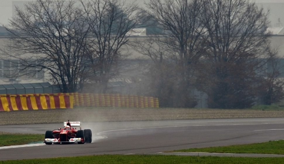 La giornata è grigia e piovigginosa, ma il quattro volte campione del Mondo di Formula 1 è sceso impavidamente, sulla pista di Fiorano su una F-2012, quella con cui Fernando Alonso (che scherzi gioca il destino) gli contese il titolo 2012 fino all’ultimo Gran Premio. Del resto, il regolamento impedisce di utilizzare in test privati vetture più recenti. Infatti, gomme intermedie e indicazioni tecniche scarse, visto che le auto di oggi sono molto diverse da quelle di soli due anni fa. Comunque la macchina già riporta il numero 5, quello che lo distinguerà l’anno prossimo, e il nome di Vettel è stato messo sulla livrea, in lettere bianche su fondo rosso.