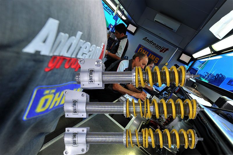 Regolabile nel precarico e nell’idraulica con 25 click, adotta molle coassiali con molla helper al posteriore. L’assetto permette inoltre la regolazione in altezza e la regolazione del camber, grazie ad apposite boccole eccentriche.