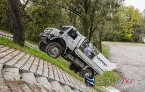 Gli interni sono più spaziosi, grazie alla lunghezza aumentata di 120 mm. Inoltre, compaiono elementi come volante multifunzione regolabile, display della strumentazione dal nuovo disegno e climatizzatore potenziato. Non manca, come da tradizione dell’Unimog, il Tirecontrol che regola la pressione degli pneumatici mediante tre programmi preimpostati. Quanto alle capacità off-road, che rappresentano la vera e propria bandiera del modello, i dati parlano chiaro: 44° per l’attacco, 51 per l’uscita e 34° riguardo l’angolo di dosso. Infine, si possono superare pendenze di 45°, inclinazioni laterali di 38° e guadi fino a 1,2 metri. “Cosa volere di più nella vita?”