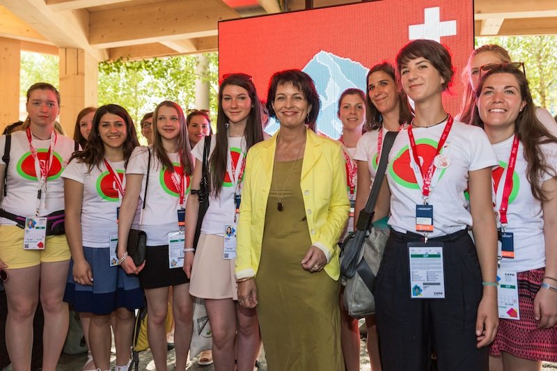 Nel suo giro al padiglione è stata accompagnata da una ventina di giovani provenienti da vari Paesi dell’arco alpino; gruppi che visitano l’Expo nell’ambito di un progetto della Commissione internazionale per la protezione delle Alpi (CIPRA).