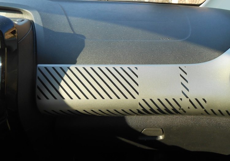 Sulle porte anteriori il tocco grafico delle strisce adesive è personale, ma non c’è da metterci la mano sul fuoco sulla loro durata nel tempo. Lo stesso vale per le decalcomanie che replicano la grafica a bordo, in punti strategici, come sulla plancia e vicino alle bocchette dell’aria.