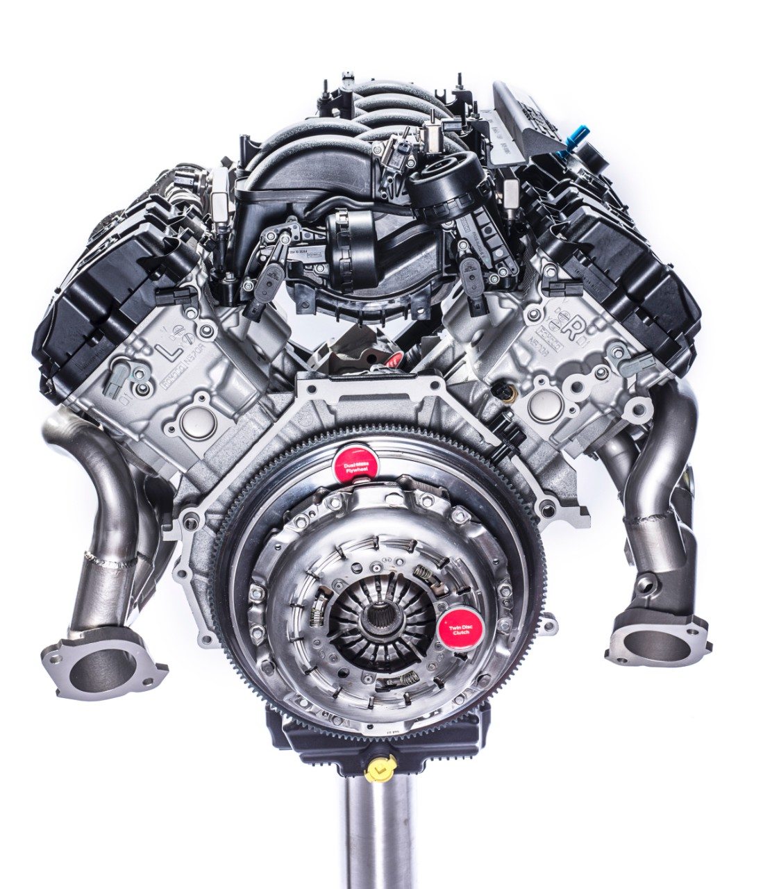 Con la Shelby GT350 per la prima volta Ford introduce nella produzione di serie un V8 con albero motore piatto (flat plane) e perni di manovella a 180°, in luogo del classico manovellismo a croce. Questa soluzione, utilizzata in passato nella Formula 1 (Ford Cosworth in primis) e oggi anche da costruttori come Ferrari, McLaren e Porsche sulle vetture stradali, consente di raggiungere facilmente performance elevatissime in virtù della spiccata propensione a guadagnare giri.