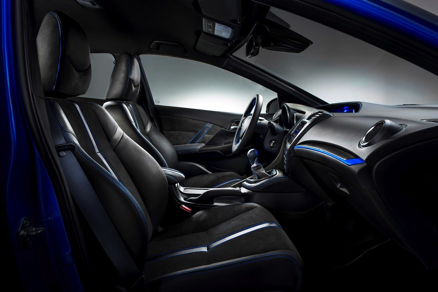 La personalizzazione è un concetto seguito per gli arredi a bordo: volante e cambio con impuntura blu, e la linea del tetto è rifinita in nero, come du Civic Sport e Civic Type R.