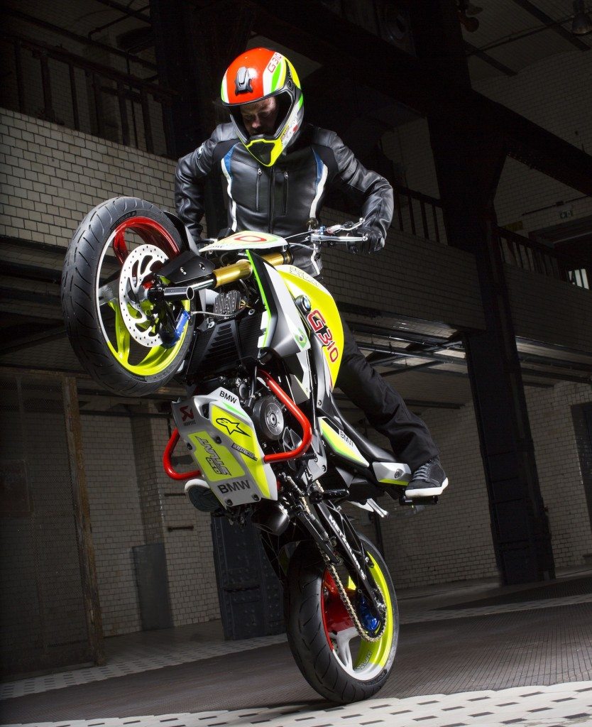 Bmw Motorrad ha presentato Stunt G310, una stuntbike innovativa dalle proporzioni compatte.