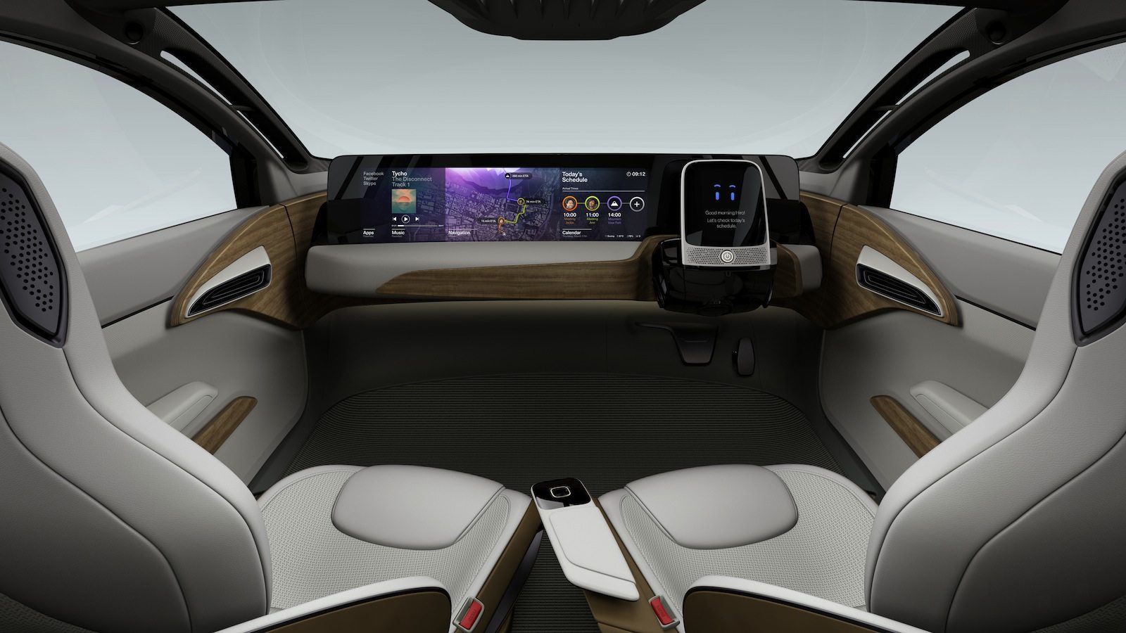 Quando si selezione la guida manuale, l’interno si modifica in funzione del conducente, che assume il controllo del veicolo. I sedili rientrano nella posizione memorizzata, lo sterzo (che ricorda le redini da equitazione) riemerge dalla plancia strumenti. Il volante visualizza tutte le informazioni e il navigatore torna alla massima funzionalità. Intanto cambiano le luci a bordo, che diventano blu, (si dice stimoli la concentrazione alla guida), e la struttura del montante A enfatizza visuale e atmosfera.