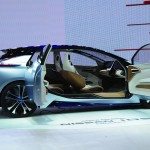 Interni ” variabili ” duplicano i modi di vivere l’auto – Gli interni assumono un aspetto diverso a seconda della modalità di guida (Automatica/Manuale) attivata dalla persona. Nissan IDS Concept ha un passo lungo che ha permesso di plasmare lo spazio per quattro adulti. L’abitacolo diventa ancora più spazioso quando si seleziona il pilota automatico: lo sterzo indietreggia mentre appare un ampio schermo piatto. Gli interni sono illuminati da una luce soft e i quattro sedili ruotano verso il centro dell’abitacolo. Se si ha voglia di conversare e ricreare un ambiente stile relax.