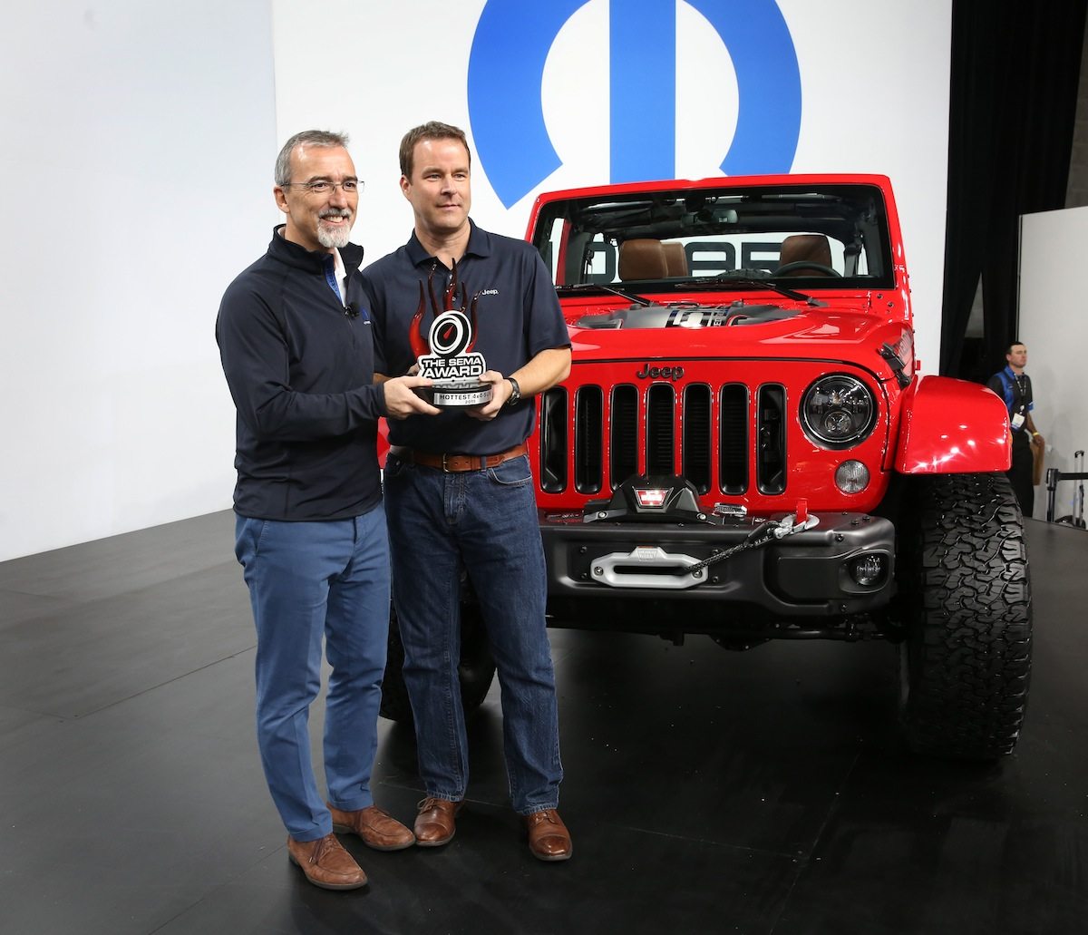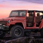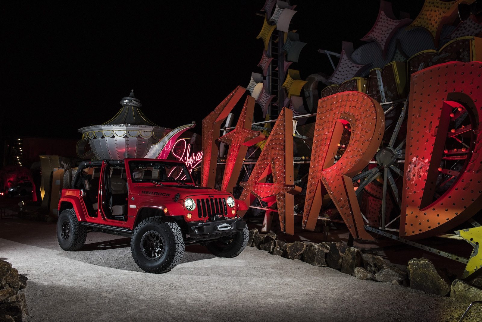 Grande protagonista la Jeep Wrangler Red Rock Concept . Basata su Unlimited Hard Rock adotta assali Dana 44 di nuova generazione, transfer con rapporto di riduzione 4.1. Evidenti poi i dettagli off-road specifici, sottoporta, ganci, winch Warn Rubicon, i badge personalizzati e la tinteggiatura infuocata da atleta aggressivo con presa d’aria nera bombata sul cofano e luci a Led. C’è anche la placca celebrativa del Easter Jeep Safari.