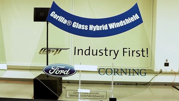 La Ford GT sarà la prima auto al mondo ad adottare per parabrezza e copertura motore la cosidetta tecnologia ibrida Corning Gorilla Glass .