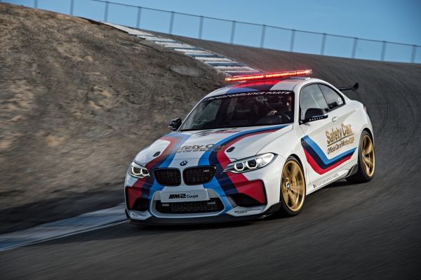 La BMW M2 Coupé è un’automobile ideale per essere la Safety MotoGP, caratteristiche insite nel DNA della vettura di Monaco di Baviera. Per il 2016 a disposizione dei commissari di gara ci sarà quindi questo nuovo mezzo veloce sviluppato a partire dalla coupé M2. Si tratta di una versione (il cui costo base ammonta a 62.400 euro), uscita direttamente dal reparto M Division, che l’ha dotata di molti degli accessori del listino M Performance, tra cui diverse parti in fibra di carbonio come i bellissimi terminali di scarico, appendici e finezze aerodinamiche, incluso l’alettone posteriore.