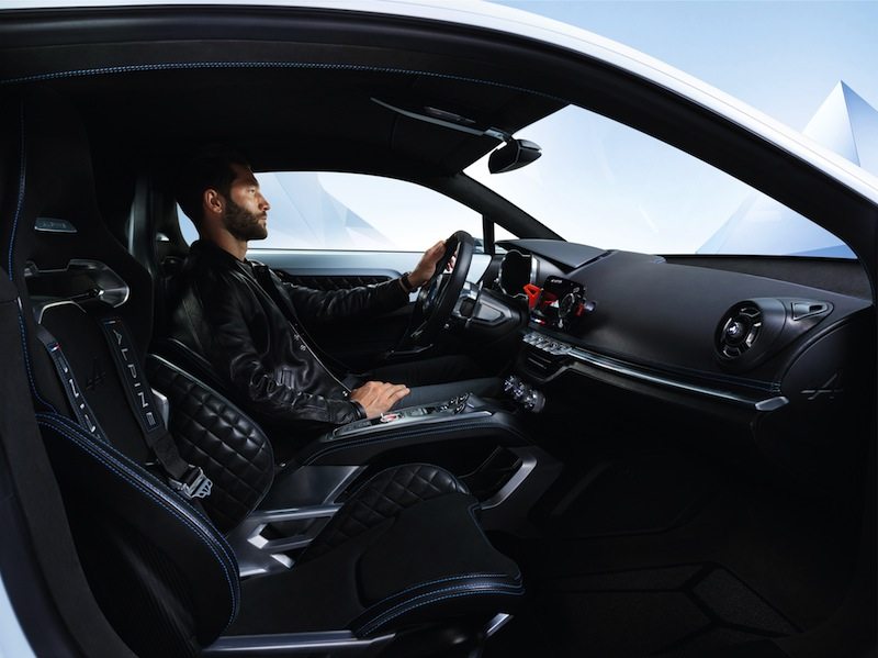 Silhouette bassa e filante, cofano motore bombato, parafanghi posteriori marcati incorporano riferimenti tipici del marchio, come all’A110 e altri modelli emblematici.