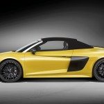 Il rombo possente della nuova Audi R8 Spyder è assicurato dal potente motore V10 5.2 litri centrale, a doppia iniezione (diretta e indiretta). Una “musica” adrenalinica enfatizzabile tramite l’impianto di scarico sportivo opzionale, con terminali in nero lucido. Tra le peculiarità del V10 Audi spicca la lubrificazione a carter secco, sistema che approvvigiona costantemente d’olio il propulsore anche nelle forti accelerazioni laterali e longitudinali, nonché nelle staccate al limite tipiche della guida in circuito. “Con una risposta all’acceleratore istantanea, una ripresa rapida e un sound inimitabile, il 5.2 V10 FSI aspirato della nuova Audi R8 Spyder assicura emozioni allo stato puro”, dichiara Stefan Knirsch, Responsabile dello sviluppo tecnico.”Rispetto alla R8 Coupé, il sound della sportiva high performance scoperta è adesso ancora più intenso e percepibile” ha concluso Knirsch.