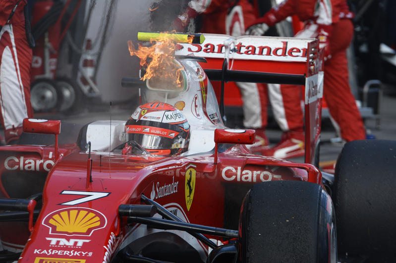 Al 23° il “KO” di Raikonnen che è rientrato ai box con la bancata sinistra in fumo smorzando l’entusiasmo dei ferraristi: non appena parcheggiata la vettura, è dovuto intervenire un commissario con l’estintore per estinguere il fuoco che fuoriusciva dalla presa d’aria sopra il casco. Peccato perché in quel momento il finlandese era terzo, dietro Vettel e Rosberg.