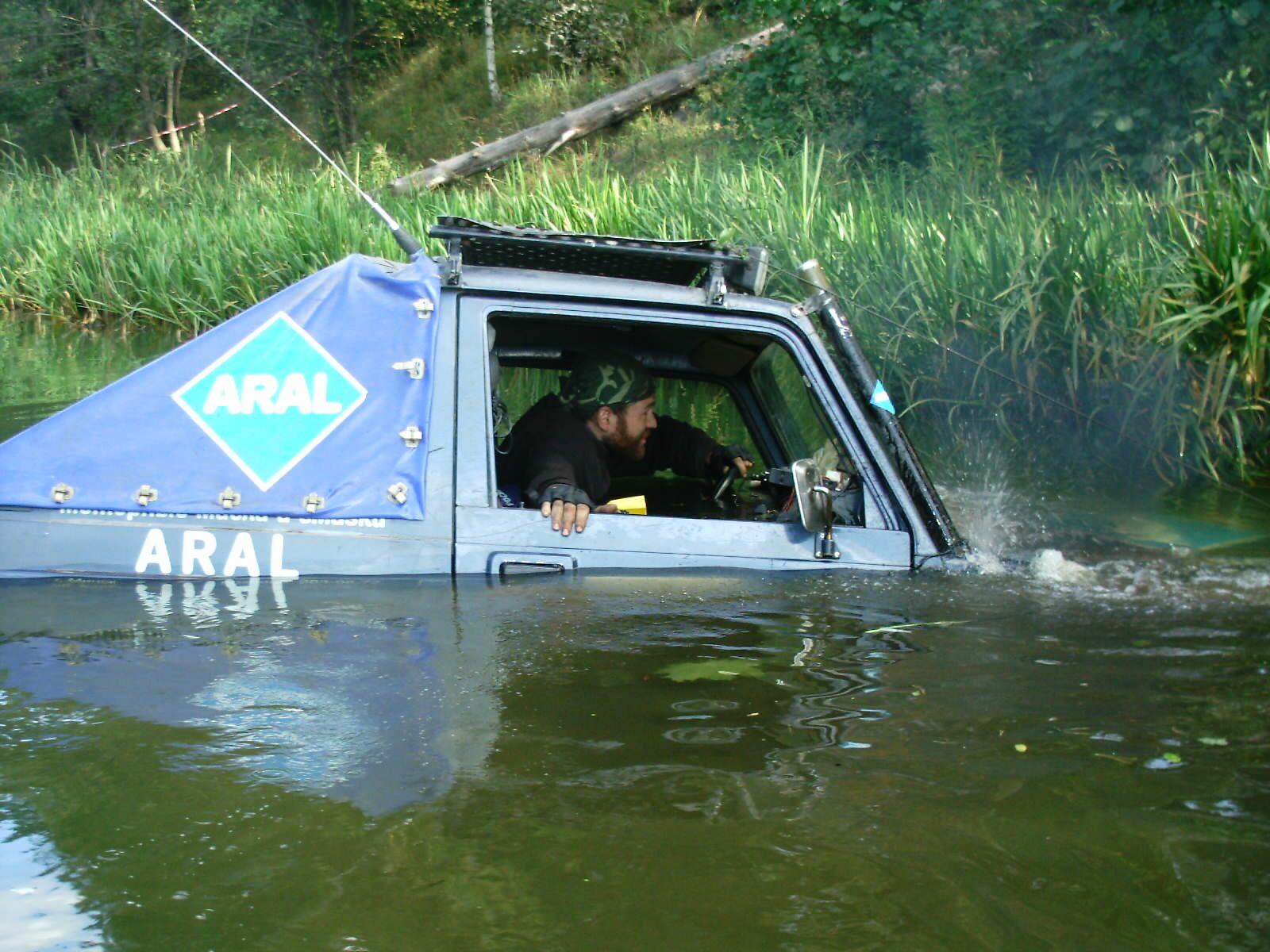 In deroga alle regole della marcia fuoristrada, il guado vuole cinture slacciate e finestrini abbassati. La ragione è palese: in ogni momento i passeggeri devono essere in grado di lasciare velocemente l’abitacolo. Se è un tre porte, a meno che non sia cabriolet, i sedili posteriori non devono ospitare nessuno, a costo di trasportare sul tetto!