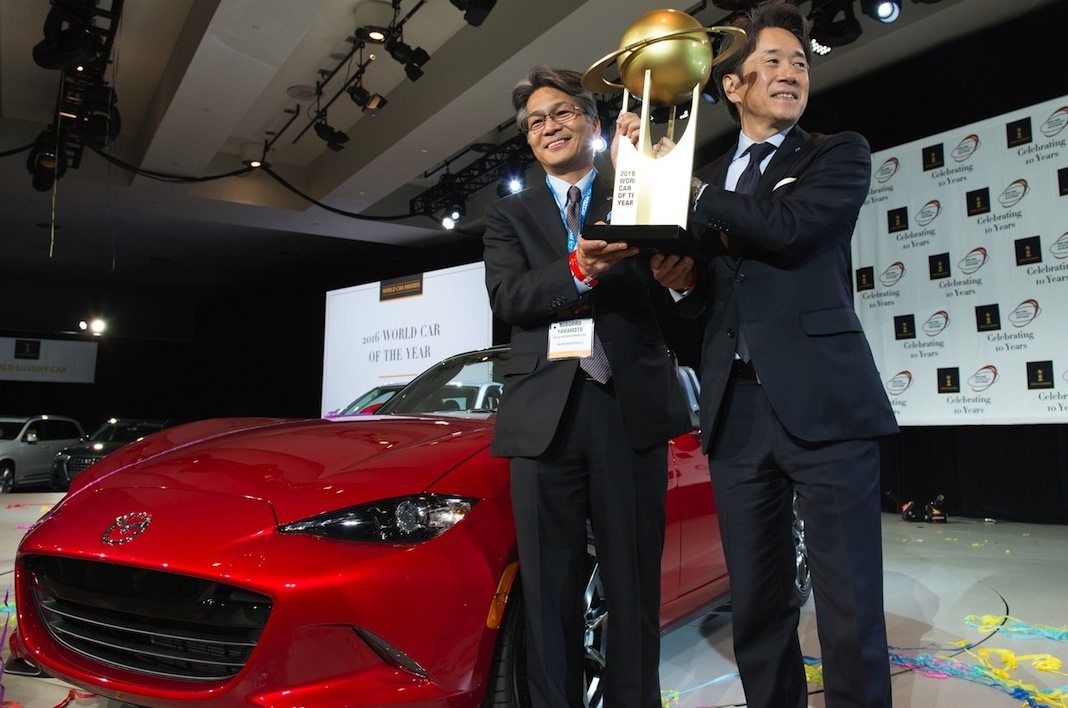 Masahiro Moro e Ikuo Maeda, in rappresentanza dei vertici manageriali di Mazda Motor Corporation, straripavano di orgoglio da tutti i pori. Dopo Mazda2 nel 2008, MX-5 è il secondo modello del marchio a conquistare il WCOTY, ma il primo a fare questo bis di riconoscimenti.