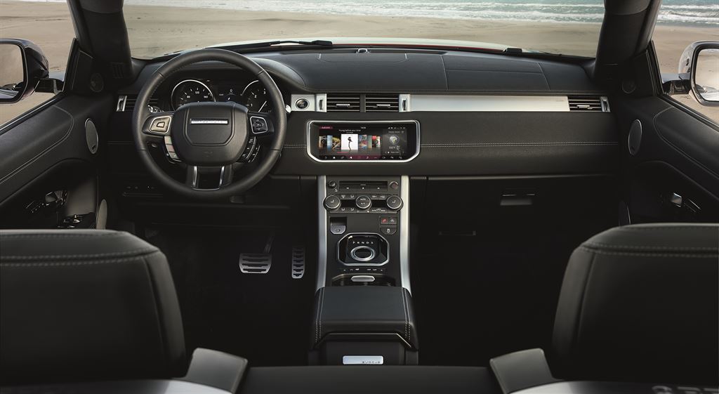 C’è un po’ di Germania nella capote elettrica dell’Evoque Convertible. Infatti, il tetto in tela è che è realizzato in collaborazione con la Webasto, si apre in appena 18 secondi e si chiude in 21. Tale operazione si può compiere anche in movimento fino a 48 km/h; l’ideale quando sopraggiunge un acquazzone improvviso nei centri urbani e non si ha lo spazio per fermarsi. A capote chiusa invece, l’Evoque perde un po’ del suo fascino estetico; molto meglio ammirarla a tetto abbassato come del resto avviene per moltissime altre cabriolet.
