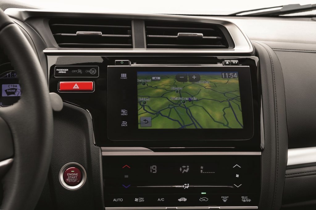 Per lo spazio a disposizione dei passeggeri, l’abitacolo rappresenta uno dei punti di forza della terza generazione della Jazz, ma anche per il posto guida perfettamente regolabile in funzione della corporatura del guidatore, che però si trova di fronte un volante che richiede un certo periodo di adattamento, in quanto affollato di tasti che possono distrarre dalla guida.