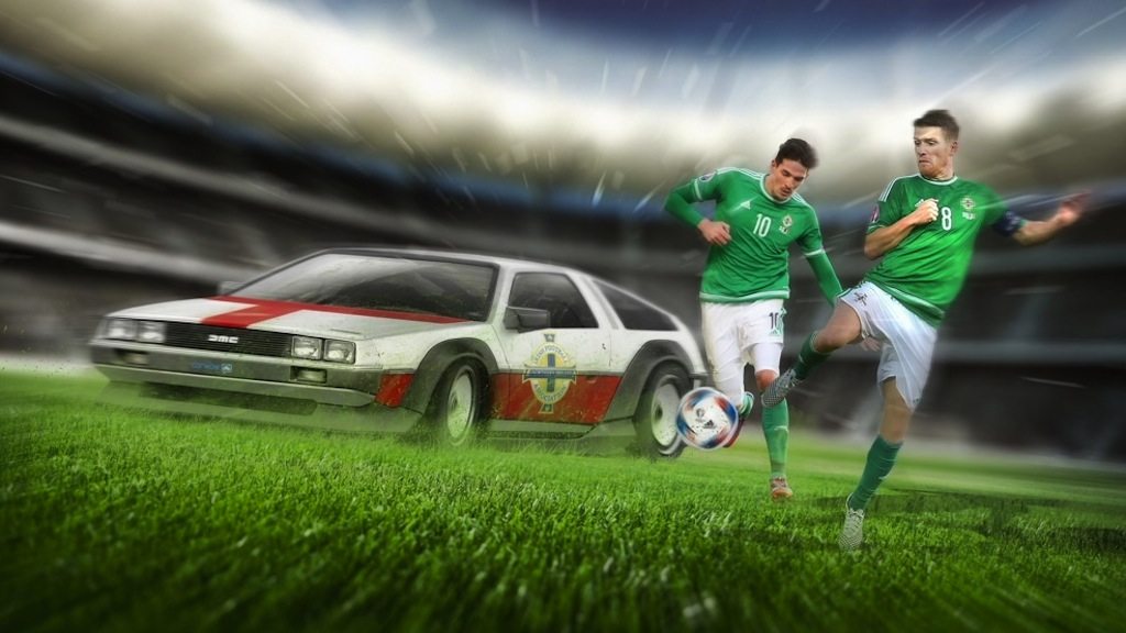 Per l’Irlanda del Nord non ci sarebbero apparentemente molti assi da giocare, ma i più esperti in fatto di motori e di film trovano a ben pensarci un nome di gran fascino. Quello della DeLorean DMC-12, la mitica vettura della trilogia di “Ritorno al futuro”, che infatti è stata preparata a Dunmurry, nel sud-ovest di Belfast. Per gli Europei 2016 la DeLorean si presenta ritoccata con i colori del bandiera della sua Patria.