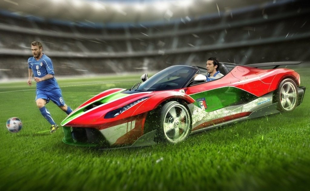Di fatto, per rappresentare la nazionale dell’Italia negli Europei 2016 si è andati a colpo sicuro, giocando sulla passione più pura e su un marchio di sicuro appeal. La nuovissima supercar Ferrari, LaFerrari Spider, gioiellino convertibile della casa del Cavallino, visto con una ideale livrea tricolore e con al posto di guida il capitano della nazionale azzurra, il portierone Gianluigi Gigi Buffon.