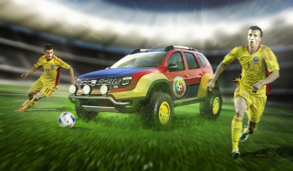 Nel pensare alla Romania è stato certo un bel po’ più semplice cercare di trovare un po’ di carattere nella Dacia Duster, con i colori della bandiera delle origini e un pizzico di tuning, dalle ruote maggiorate, all’assetto rialzato e tre faretti aggiuntivi nel frontale.
