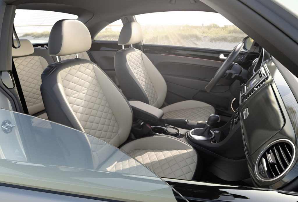 Leggero lifting anche per lo stile di alcuni elementi dell’abitacolo della nuova Maggiolino, che ha ricevuto alcuni aggiornamenti come la rifinitura in tinta carrozzeria e modifiche alla plancia e quadro strumenti per le versioni “Design Line” ed “R-Line”. Optional il “pacchetto” R-Line per gli interni, completo di battitacco e poggiatesta con monogramma specifico, sedili in tessuto Kyalami o pelle Vienna e un nuovo volante rivestito in pelle.