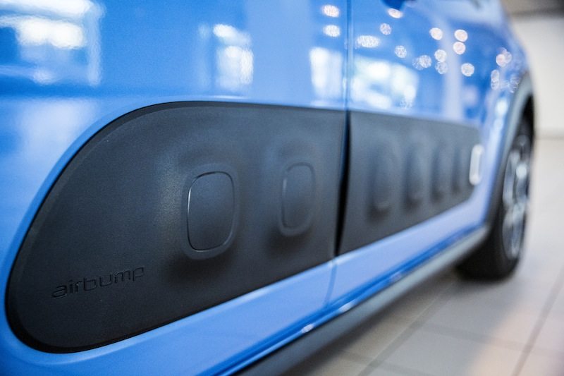 Colore carrozzeria blu, abbinato al bianco di tetto, gusci retrovisori, profili di fendinebbia e montante e per il dettaglio diversificato dell’Airbump.