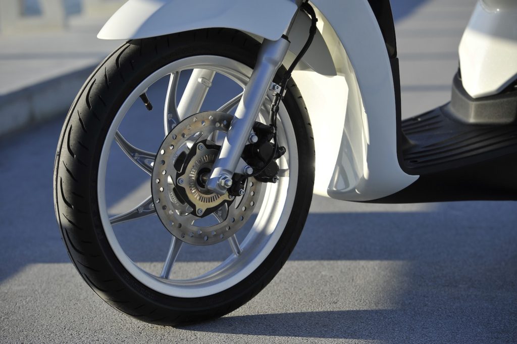In entrambe le motorizzazioni colpisce la silenziosità e la grande efficienza del sistema ABS che controlla l’impianto frenante impedendo il blocco della ruota anteriore nel caso di frenate brusche o in presenza di fondo dalla scarsa aderenza. Soprattutto nella motorizzazione 150 cc è apprezzabile l’erogazione di potenza, sempre fluida, con riprese brillanti, mentre la nuova ruota da 16 pollici ha migliorato ulteriormente la tenuta di strada. In città la motorizzazione 125 cc è l’ideale soprattutto per il raggio di sterzata che le consente di girare su se stessa (o quasi).