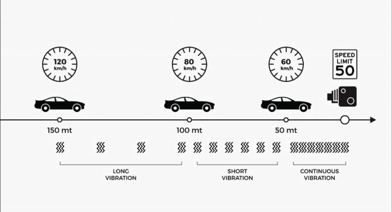 E’ simile nella forma e nel materiale a un comune braccialetto in pelle da mettere al polso, ma contiene un sistema di vibrazione calibrato per aumentare di intensità, in grado di attivarsi a circa 150 metri dalla presenza di un’autovelox o di una delle 7.600 zone sensibili in Italia.
