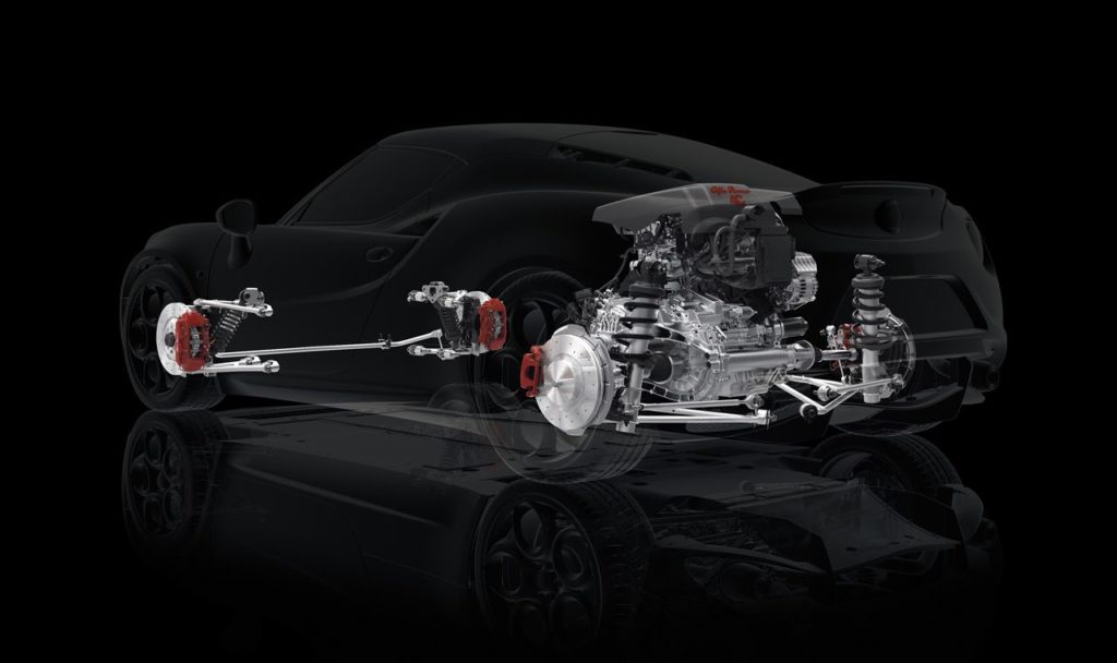 Le Alfa Romeo 4C Coupé “Competizione” e 4C Spider “Italia”, hanno il motore 1750 Turbo Benzina da 240 CV in alluminio, a iniezione diretta, intercooler e doppio variatore di fase continuo. Abbinato al cambio automatico TCT, questo propulsore regala prestazioni da supercar. Rapporto peso/potenza inferiore ai 4kg/CV, 258 km/h (257 km/h per la 4C Spider) di velocità massima, 4”5/10 per accelerare da 0 a 100 km/h e 1,1 g di accelerazione laterale. Contribuiscono a queste performance l’ampio impiego di materiali ultraleggeri quali fibra di carbono per la scocca, l’alluminio per i telaietti anteriori e posteriori e l’SMC per la carrozzeria.