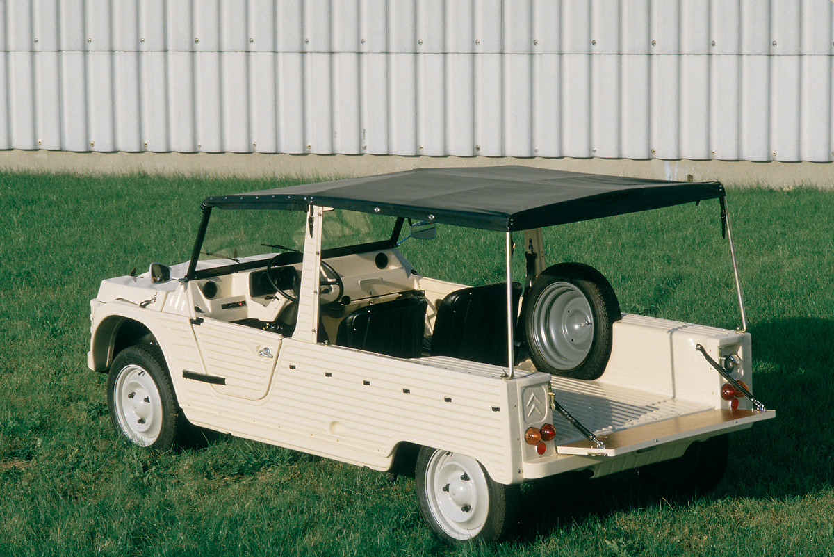 Vettura completamente aperta, con la possibilità di montare un tetto in tela, la Méhari ha una carrozzeria nata dall’intuizione di un industriale, Roland Paulze d’ivoy de la Poype, che immaginò un telaio in ABS. Quest’ultimo, acronimo di Acrilonitrile Butadiene Stirene, è un materiale plastico rigido, capace di assorbire urti anche consistenti senza rompersi, facilmente plasmabile, resistente, che può essere colorato con tinte lucide e brillanti. All’epoca, De la Poype è titolare della SEAB, azienda che utilizza la plastica per le sue realizzazioni, un prodotto che rivoluziona il mondo. La SEAB ha tra i suoi clienti anche Citroen e De la Poype trova logico dotarsi di una flotta di veicoli commerciali Citroen. Un giorno, una delle furgonette Citroen AK della SEAB esce di strada, finendo in una scarpata e ribaltandosi più volte.