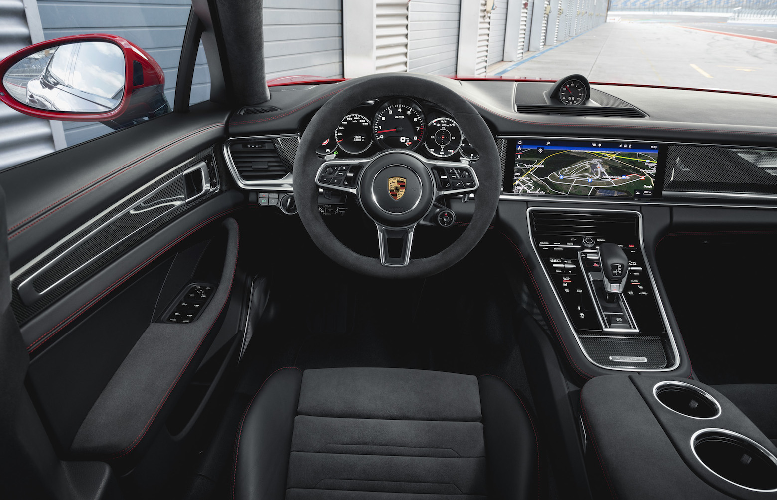 Nell’abitacolo ampie superfici rivestite in Alcantara caratterizzano gli interni.Insieme a dettagli in alluminio anodizzato e volante sportivo multifunzione con levette trasmissione. Inoltre, Porsche ha ampliato la sua gamma di sistemi dedicati al comfort e all’assistenza alla guida, che ora comprendono un head-up display con numerose opzioni di configurazione per l’intera gamma Panamera.
