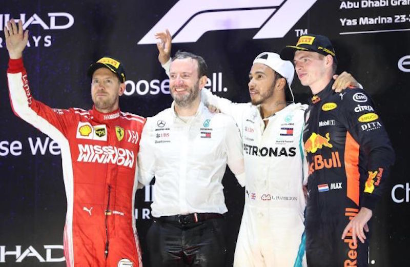 L’undicesimo successo della stagione per il britannico è il ritratto dell’annata. Le Mercedes portano a casa la quinta vittoria consecutiva negli Emirati Arabi che, come da tradizione recente, ospitano l’ultimo giro di giostra del circus. Alle sue spalle il ritrovato Sebastian Vettel, 2°, e l’ottimo Max Verstappen, 3°, mai sceso dal podio nelle ultime cinque gare. Quarto Daniel Ricciardo, al passo d’addio con la Red Bull (dal prossimo anno correrà con la Renault).
