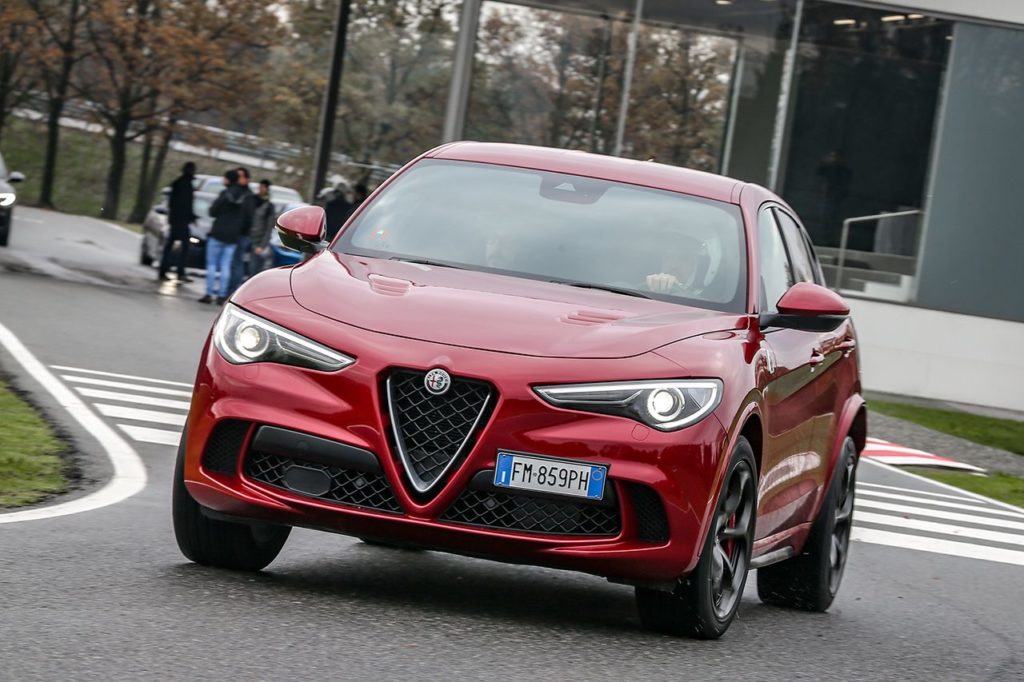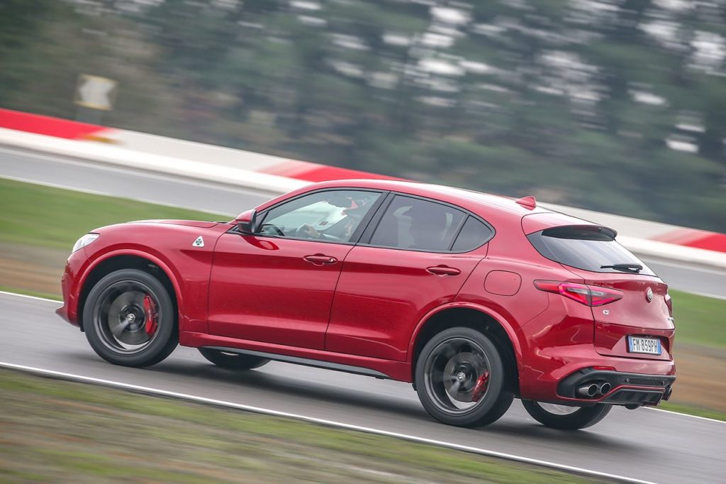 Lasciamo la Giulia Quadrifoglio per occuparci dello Stelvio Quadrifoglio. Sarà la presenza della trazione integrale Q4, fatto sta che con la pioggia il potentissimo SUV Alfa sembra comportarsi ancor meglio della Giulia. In condizioni normali di aderenza, il sistema Q4 invia il 100% della trazione alle ruote posteriori. Ma quando si approssimano perdite d’aderenza del retrotreno una certa percentuale di coppia viene inviata all’avantreno. Esattamente è quello che accade costantemente oggi, sotto la pioggia. Solite prove con i vari setup del DNA inseriti e la sensazione che, nonostante l’altezza del corpo vettura superiore e il peso più elevato, lo Stelvio Quadrifoglio non sia poi così distante dal comportamento in curva dell’omonima versione della Giulia.