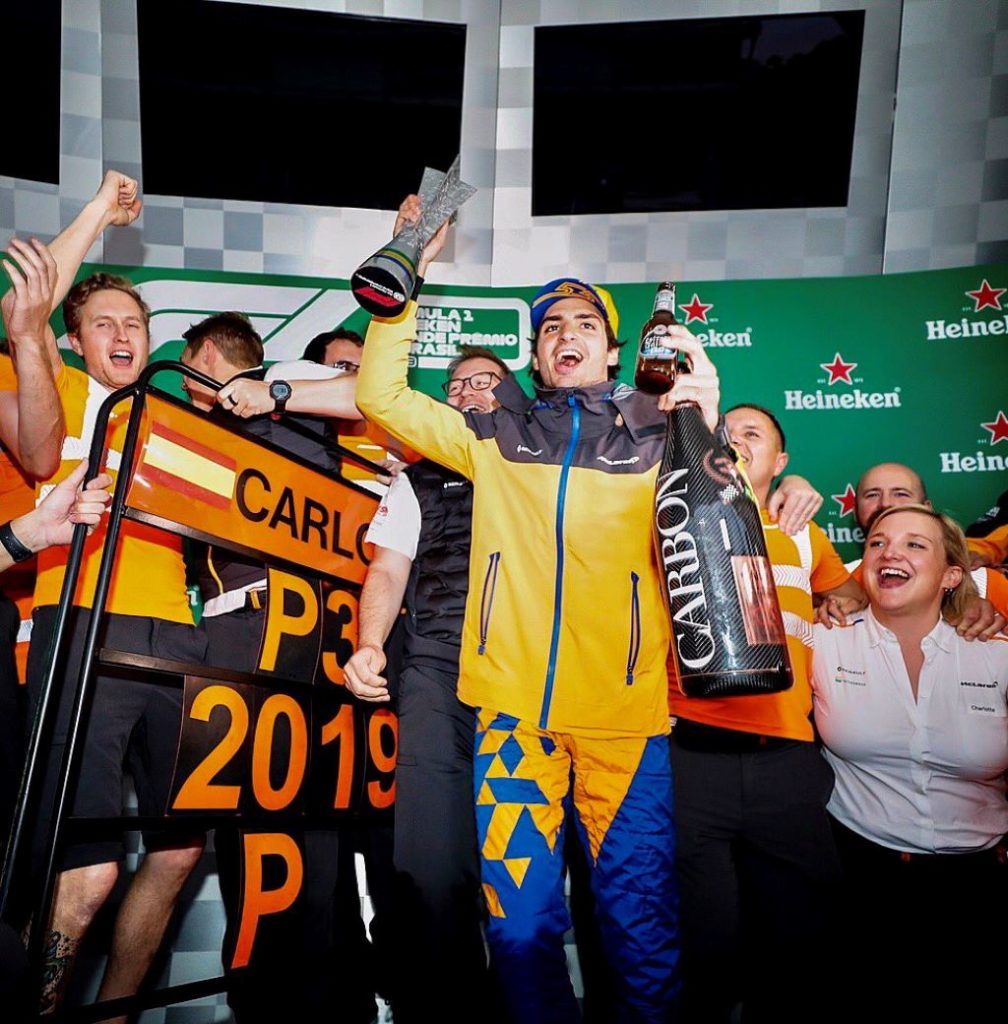 La gara in pratica finirebbe qui. Ma i giudici di gara reputano irregolare la manovra di Hamilton, il quale deve scontare 5” di penalizzazione, perdendo il podio e ritrovandosi alla fine 7°. Al terzo gradino del podio sale allora Sainz, che corona una grande rimonta dall’ultimo posto in griglia.