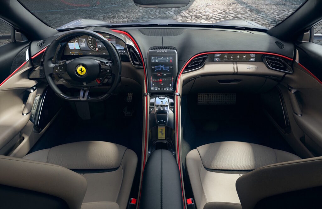 Come ormai avviene da anni per tutte le Ferrari, anche la Roma vanta una perfetta interazione tra meccanica ed elettronica. Questo capolavoro parte da un listino di 200.936 euro tasse incluse.