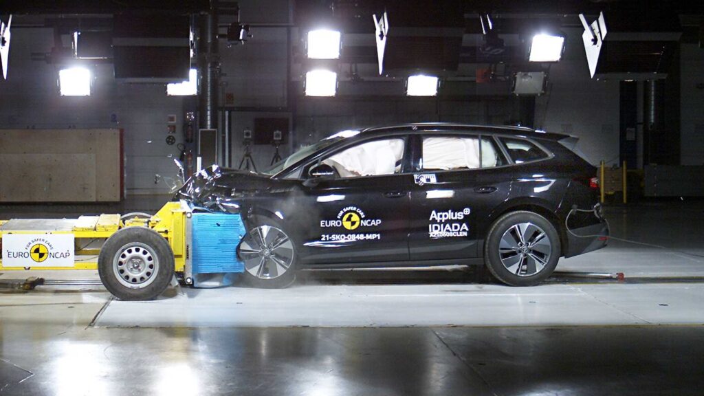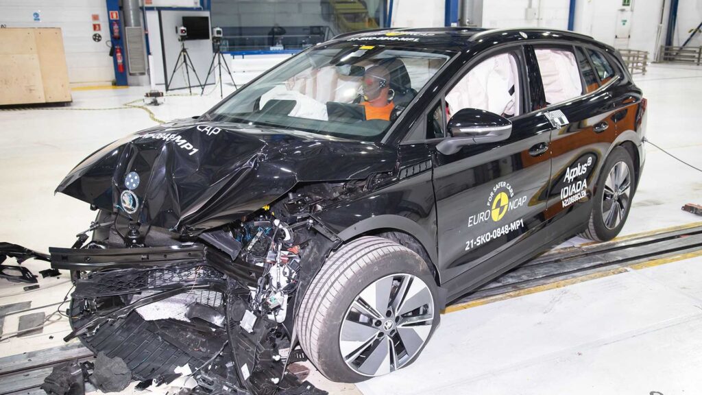 Per la Skoda Enyaq, nei test Euro NCAP risulta ottima la protezione degli occupanti con massimi punteggi di Euro NCAP in ogni prova. Piccole criticità sono emerse in caso di urto laterale con eccessiva escursione del guidatore verso il passeggero accanto. Favorevoli la dotazione e la performance sei sistemi di assistenza alla guida.